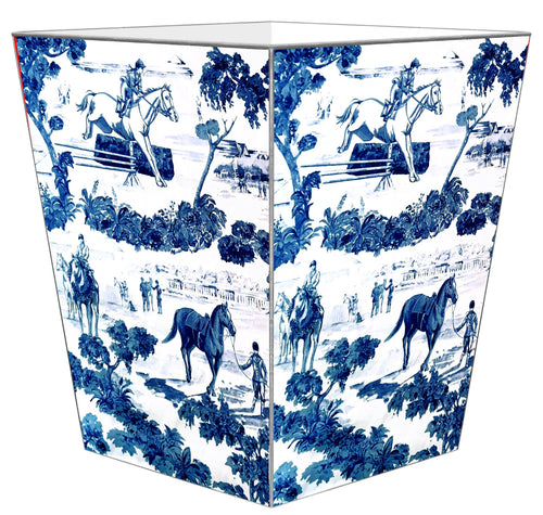 Marye-Kelley - WB8823- Blue Equestrian Wastepaper Basket: Flat Top