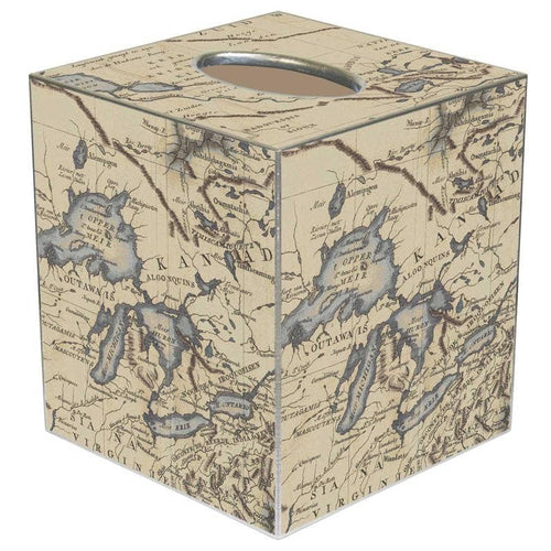 Marye-Kelley - Antique Great Lakes Map Tissue Box: Wood