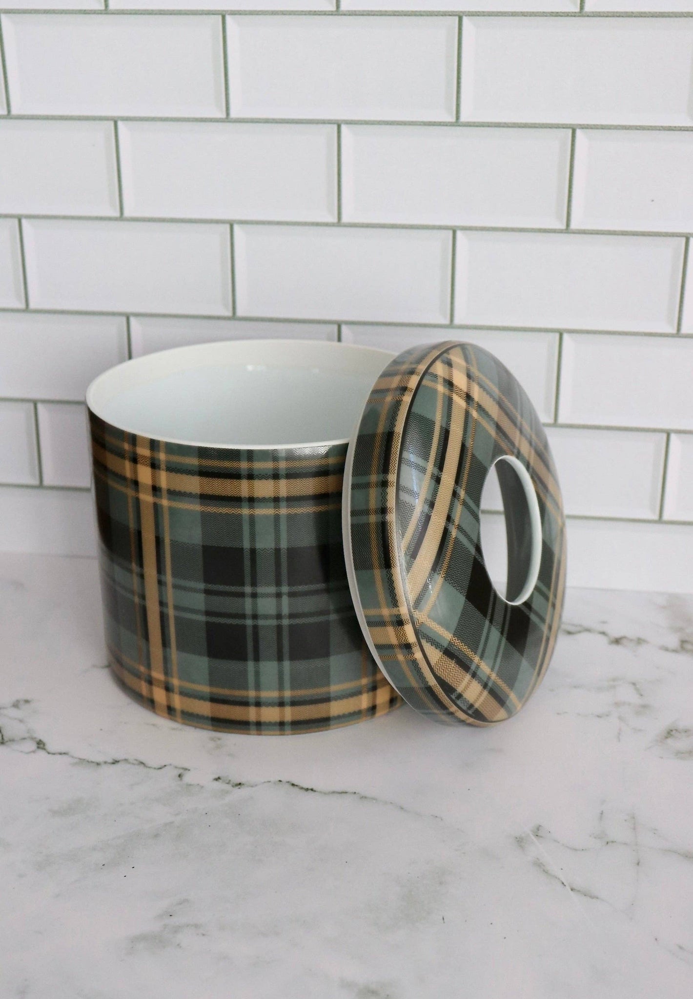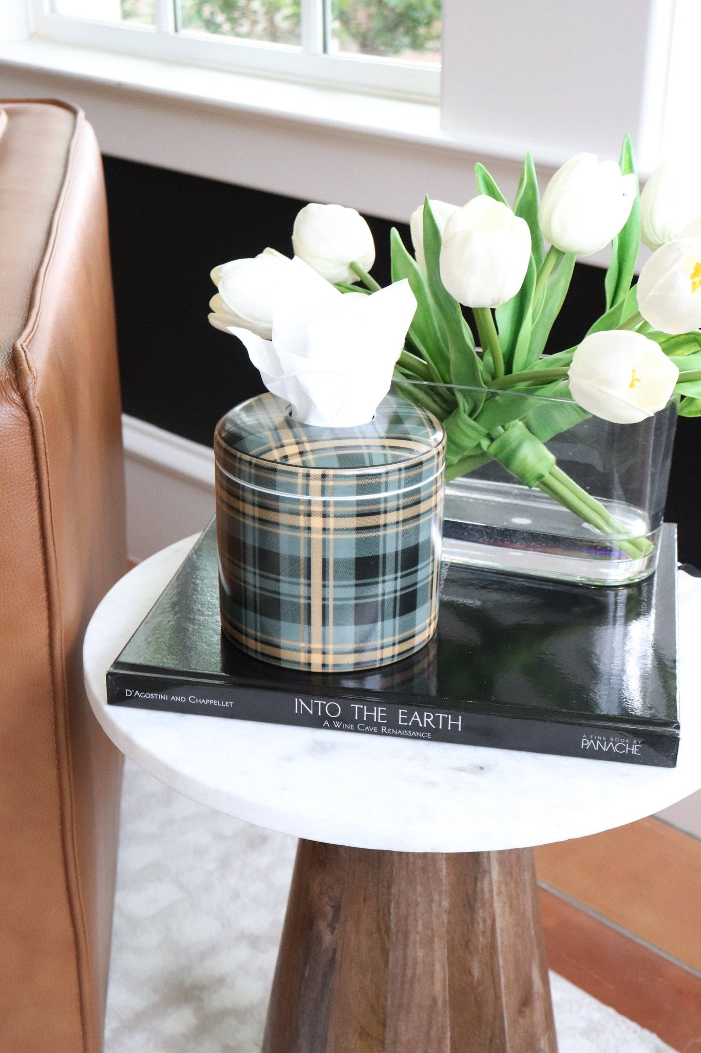 Meet Presley, a refined ceramic tissue vessel wrapped in timeless plaid. With rich forest tones and warm golden accents, Presley balances tradition with modern polish. The glossy finish and tailored pattern bring effortless sophistication to any space — from cozy study to elegant bath. Designed to turn an everyday essential into a statement of style.