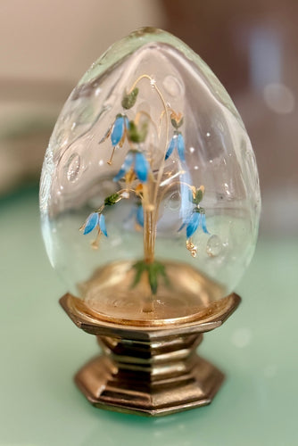 Fleur des Siecles Glass Egg with Aqua Enamel Flowers - Vintage Jane Hutcheson for Gorham