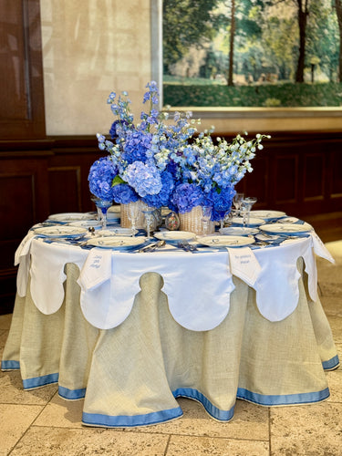Custom Tablecloth with Caned Shadow Ribbon by Drapette